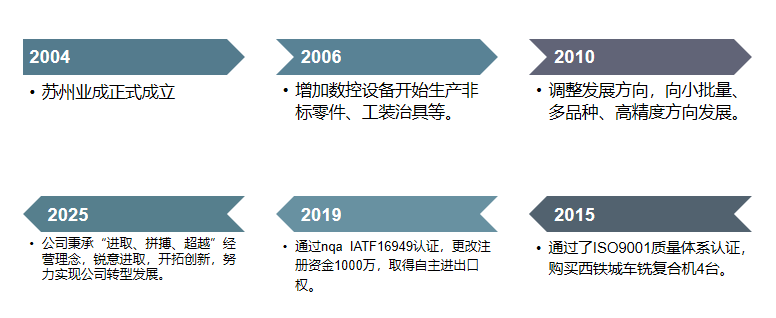 蘇州業成精密是集設計、生產、銷售、服務為一體的精密加工型企業,主要為外資企業做配套服務。公司創建于2004年,位于蘇州市吳中區橫涇鎮堯南路30號,擁有加工中心12臺、CNC數控車床17臺、車銑復合5臺、普通車床等生產設備,產品分為非標機械零部件、夾具治具類及滾軸類等產品。涉及領域有通信電子、自動化機械設備、救生設備、電器、醫療等。